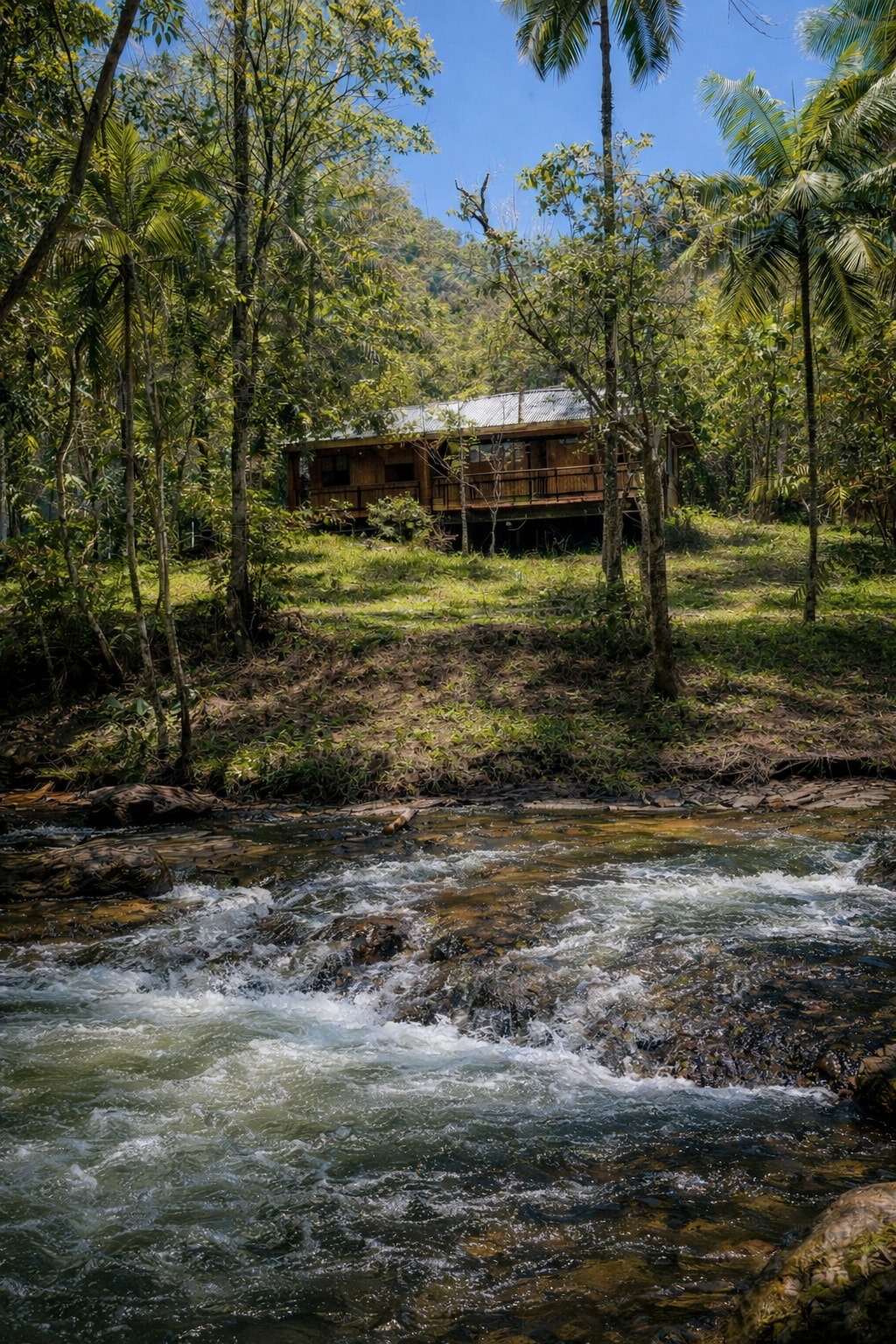 O valor da diária é para até 3 pessoas e acima disso começa a cobrar estadia por pessoa no valor de $65,00. Local super agradável. Com rio Benevente passando em frente. Dormir ouvindo o barulho das águas; Muito verde, muita tranquilidade, Local privativo. Prainha particular para banho no rio; Lareira externa para abrilhantar a noite; Fica a aproximadamente 500 metros da Vila de Matilde.