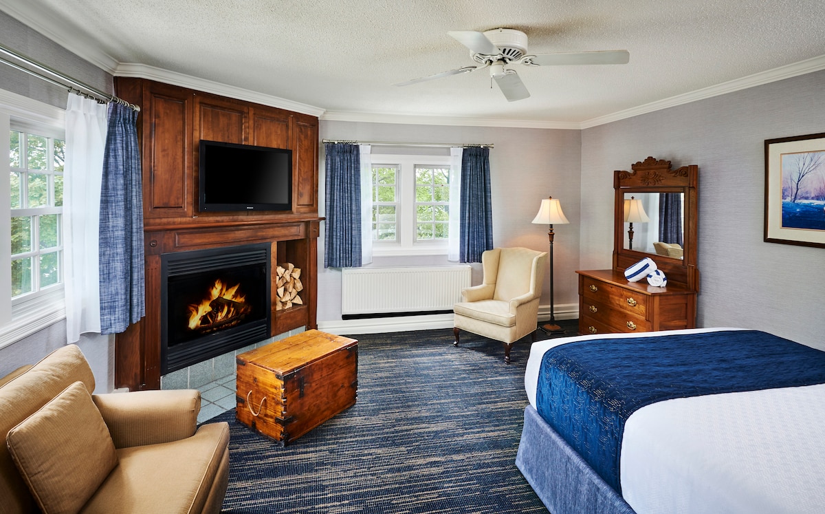 Lakewinds IV (1-2 ppl) – Adults over 18 only. Main Lodge Lakeview Suite with wood fireplace, flat screen TV, whirlpool tub, queen size bed, coffee maker. Onsite facilities include our rejuvenating WaterSpa, outdoor pool, lake cruises aboard the historic Lady Hughes, canoes, kayaks and tennis courts. Restaurant onsite and unique experiences for an additional fee include spa therapy session, dogsledding, snowmobiling and treetop trekking all available in the local area or onsite.