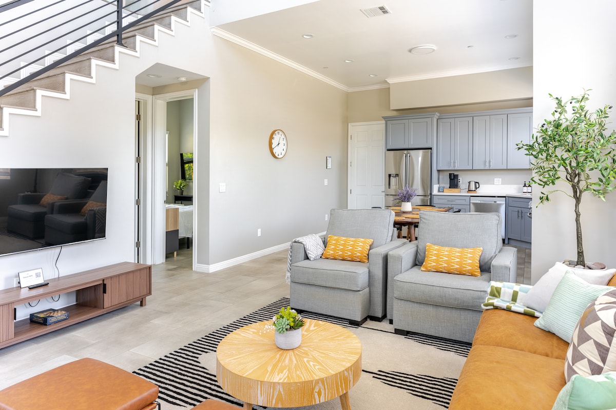 Öz şəxsi kino teatr üslubunda qonaq otağınızla məşğul gününüzü kəşf edin. 4K divardan divara qədər film proyektoru, rahat uzanan və film izləmək üçün divan, sevimli oyunlarınız və ya canlı televizor ilə qurulub. Bütün ev simsiz şarj cihazı, blutuz radiosu və ağıllı dinamik kimi ən son texnologiya ilə təchiz olunub. Bu banqalo tarixi ərazidə yerləşir, xüsusi arxa xiyaban vasitəsilə əlçatandır və BİR xüsusi və qapalı parkinqi, qab yuyan maşını olan TAM MƏTBƏXİ var.