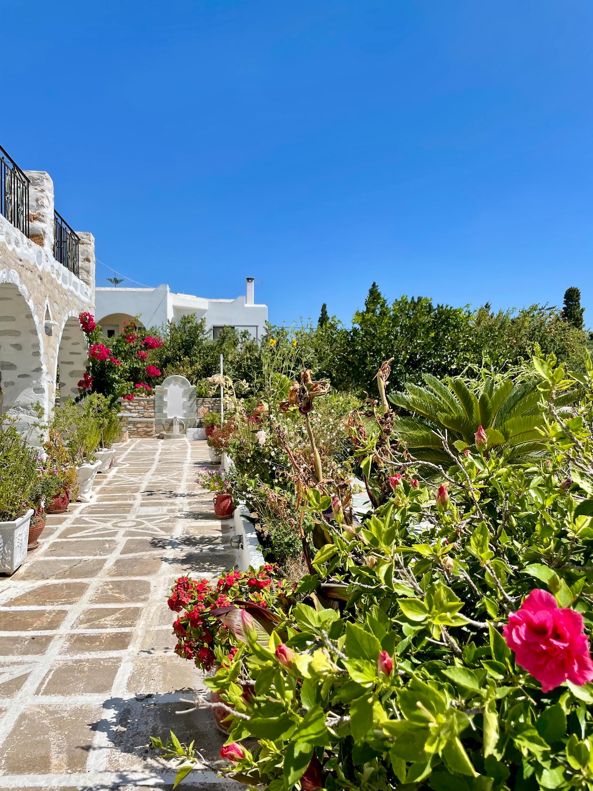 Parikia (əsas şəhər) və Pounda (Antiparosa bərə) yaxınlığında yerləşən bu 180 kv. m. (1,940 kv. metr) villa heyrətamiz dağ və dəniz mənzərələri təklif edir. Parikadan 3 km məsafədə yerləşən sakit kənd təsərrüfatı ərazisində geniş açıq hava sahələri və böyük üzgüçülük hovuzu ilə ümumi məxfiliyi təmin edir. Gizli yol qumlu Parasporos Çimərliyinə aparır. Sahibi tərəfindən düşünülmüş şəkildə bəzədilmiş villa sakit istirahət yeri yaratmaq üçün ənənəvi elementlər, təbii materiallar və sakitləşdirici tonlarla Fenq Şui prinsiplərini birləşdirir.