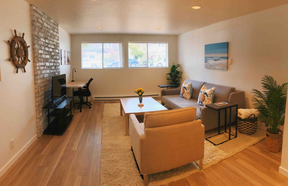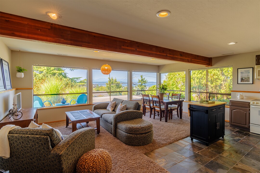 Need a beachfront getway? Kayak, paddleboard, walk, run, ride, scoot, play volleyball, or just plain unwind? This one-bedroom (in triplex) is across from Seattle’s most photogenic beach with an unobstructed view. Perfect for Zoom or to just unplug, unwind, and enjoy the beach lifestyle! ★ "The location of this property is INSANE. you are steps from the beach and a short walk to all the best food and drink in the area! " Fun coastal flair, just 60 steps from the sand. What more could you want?