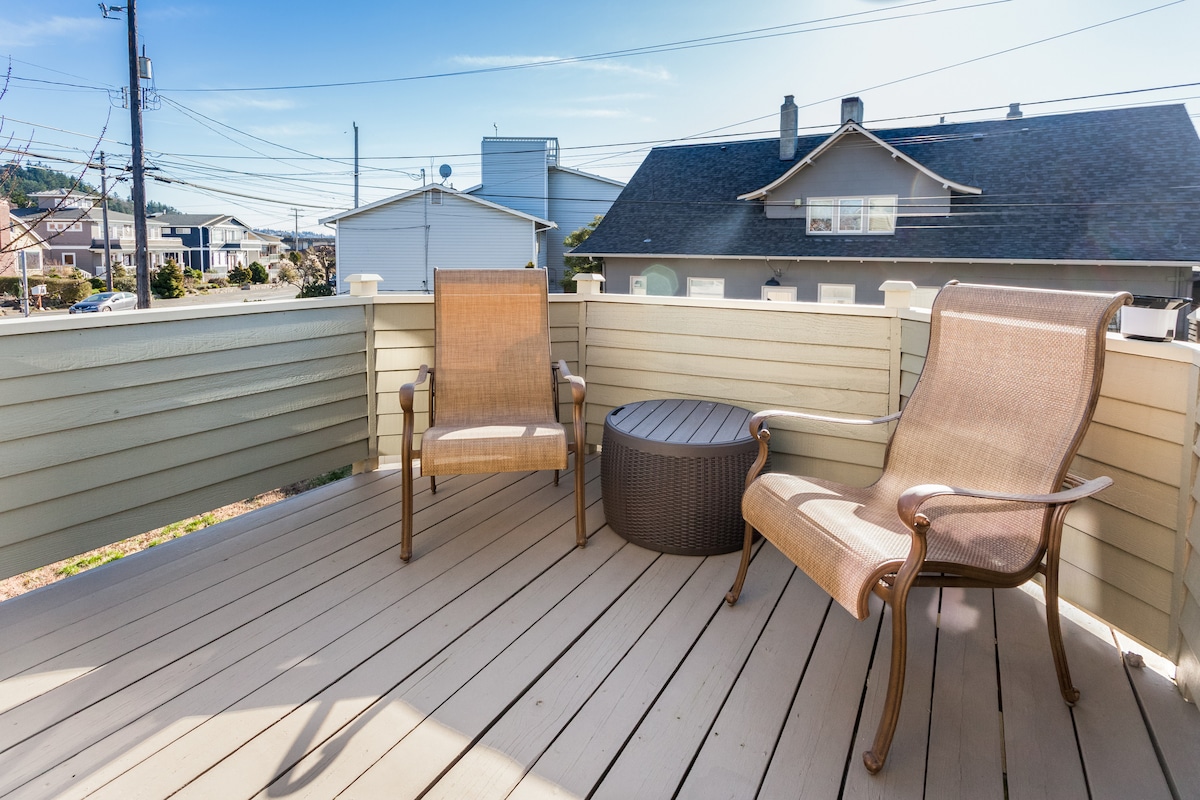 Rooftop Deck: Relax & unwind with panoramic water & mountain vistas. Gourmet Kitchen: Fully equipped with high-end appliances for your culinary needs. Spacious Bedrooms: Stylish & comfortable for a restful stay. Dedicated Workspace: work & study. Beach Access: Just steps away from Alki Beach—perfect for swimming, kayaking, or strolling. Modern Amenities: Includes Wi-Fi, smart TV, & a washer/dryer for convenience. Prime Location: Close to trendy cafes, restaurants, & local attractions.