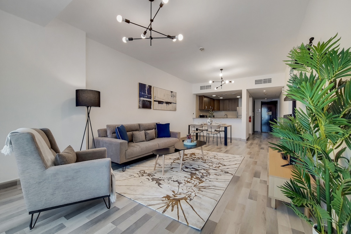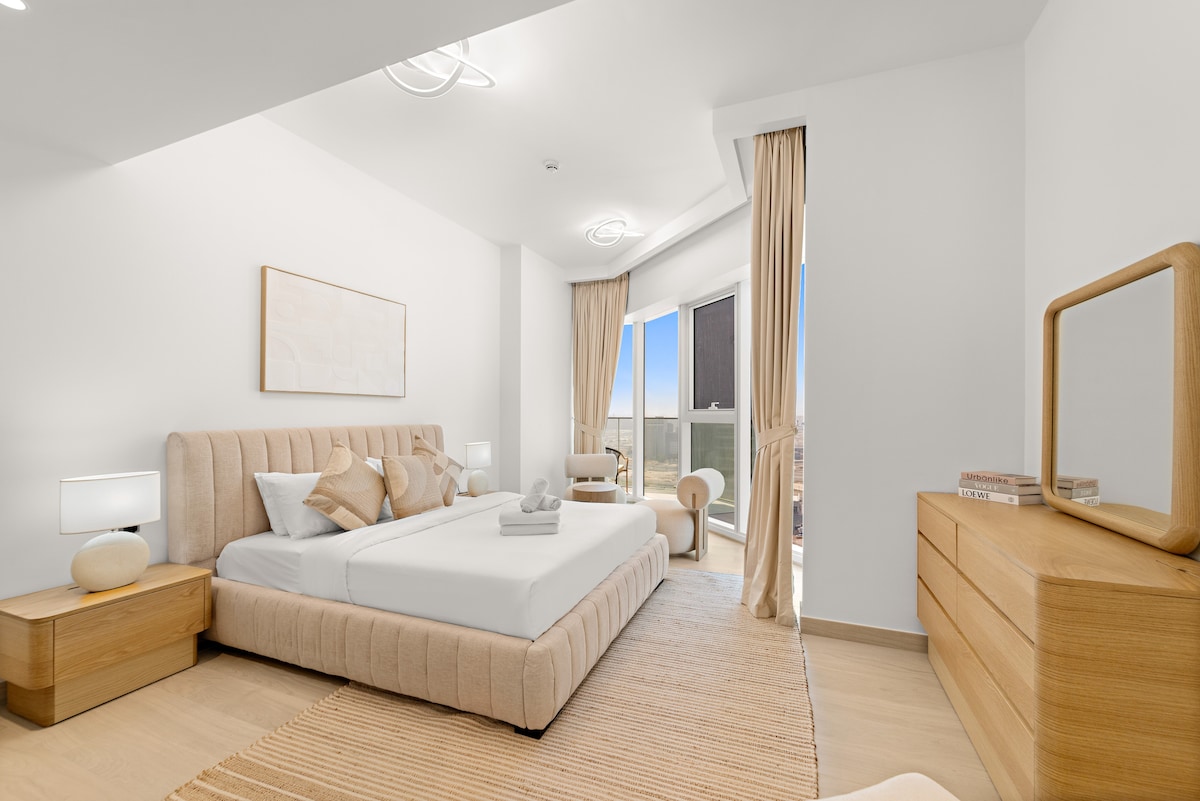 Bluewaters adasının cazibəsindən zövq alın! Ürəklərinizi Ain Dubai-da yarışın, The Wharf-ın sakit aurasında gəzin, Sezar Sarayında kral kimi bayram edin və hətta Madam Tussaudsda 60 həyat tərzinə uyğun çiyinlərə sürtün. Şəxsi vahəniz? Dəniz mənzərəli, etibarlı Wi-Fi və sehrli xalça gəzintisindən daha rahat parkinqi olan parlaq 1 otaqlı mənzil. Hovuzda sərinləşdirici dalınca gedin, fitnes mərkəzində istəklərinizi yormayın və ya şəhər tədqiqatçısı kimi plaza parkında gəzin.