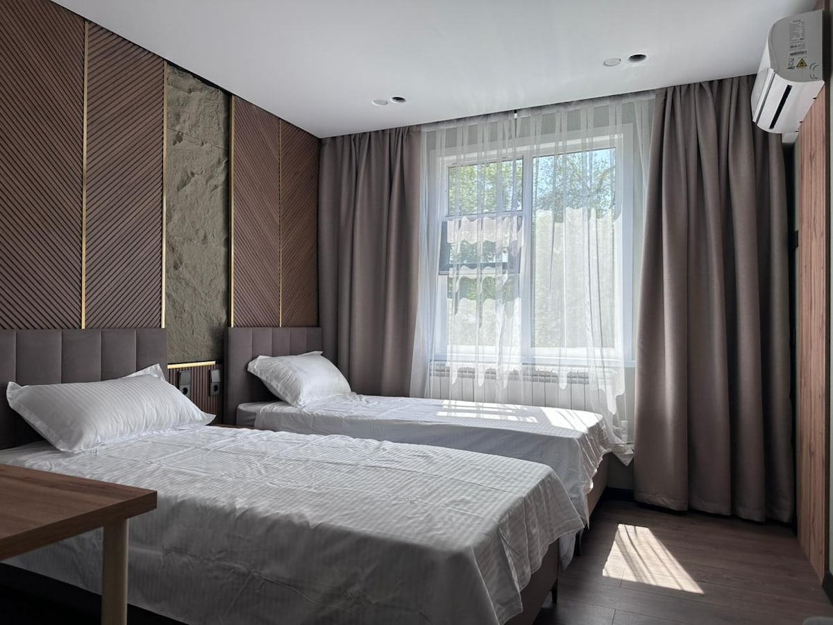 Almatı şəhərinin mərkəzində AIRIS RESIDENCE | Premium otel İstirahət və işgüzar səfərlər üçün 32 rahat otaq. Hər bir otaq müasir üslubda bəzədilib və ehtiyacınız olan hər şeylə təchiz edilib: Premium yataq dəsti olan böyük ölçülü çarpayı (180×200) - Kondisioner - Qiymətli əşyaları saxlamaq üçün təhlükəsizdir - Minibar və soyuducu - Duşlu vanna otağı - Dəsmal, hamam və tualet ləvazimatlarının tam dəsti Bufet səhər yeməyi qiymətdədir - 24 saat qəbul