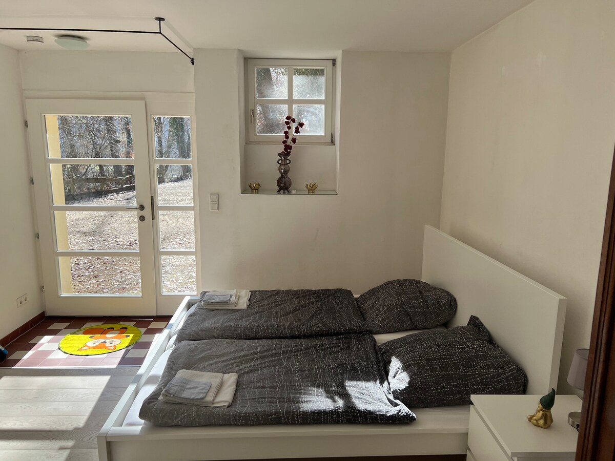 Tətil mənzili evimizin birinci mərtəbəsində yerləşir. Mənzildə və terrasda tam sükunət və sakitlikdən zövq alacaqsınız. Təbii halına qaytarılmış karxana gölməçələrində və ətraf meşələrdə gəzintiyə çıxa bilərsiniz. Bəzi karxana gölməçələri geniş, təbii çimərliklərə çevrilib. Velosiped yolu evin yanından keçir. Yuxarı Dunay Vadisi, Konstans Gölü və Şvabiya Albi avtomobillə 10-30 dəqiqəlik məsafədədir.