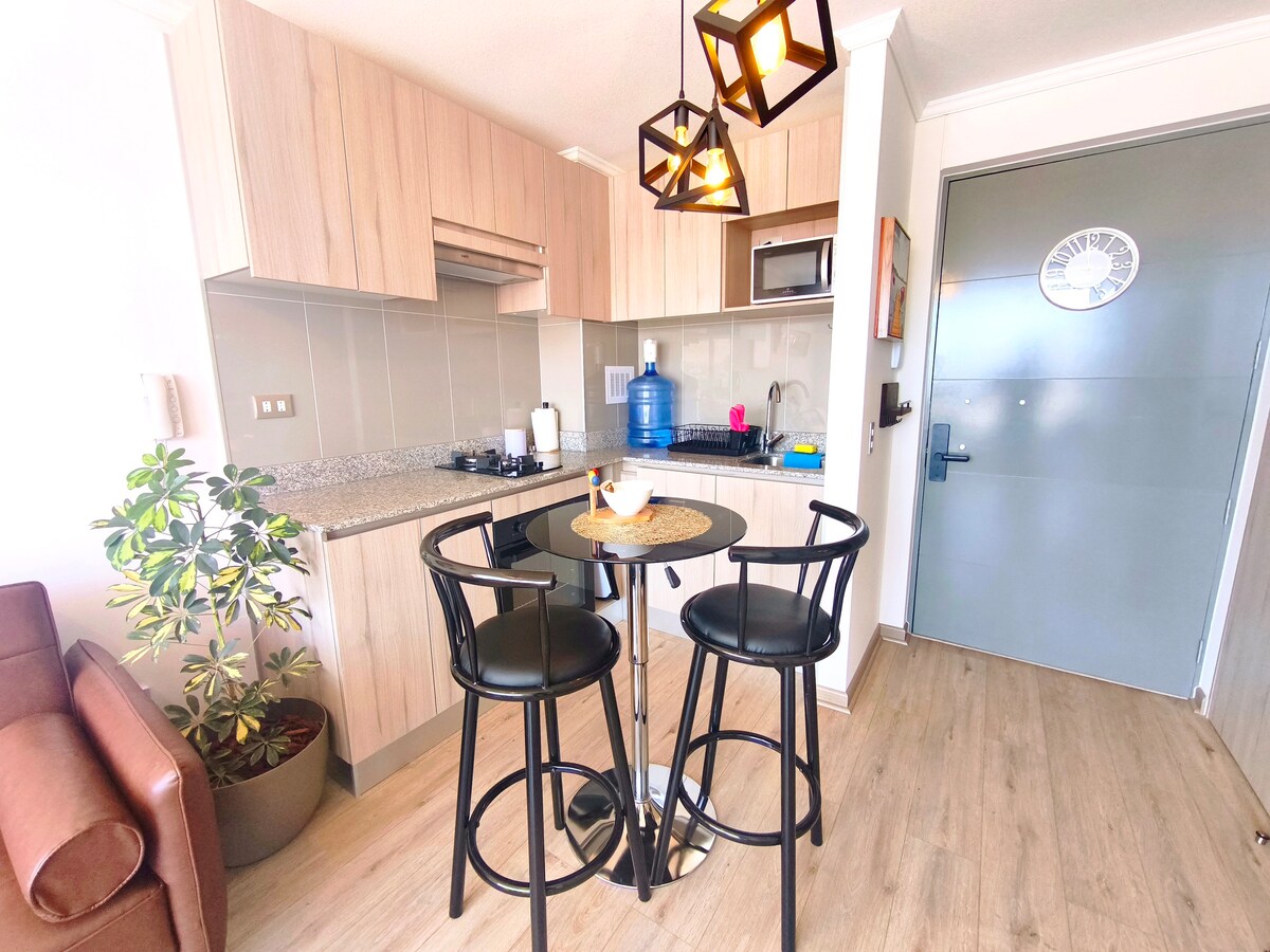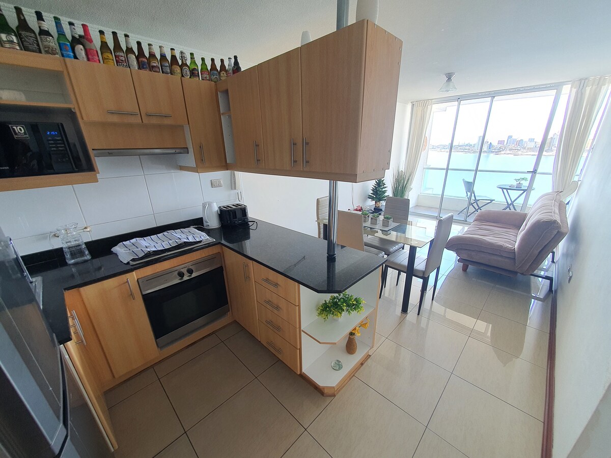 Fasiləyə layiqsiniz, sadə , rahat, təmiz və funksional bir evdə. xüsusi parkinq ilə. Mənzil 23-cü mərtəbədə yerləşir, şəhərin cənub sektoruna baxın,burada dənizi və ikonik əjdaha təpəsini görə bilərsiniz. Pərakəndə satış, pablar və yaxşı restoranlara qədər məsafə qət edin. Çimərlikdən dəqiqələr. Təhlükəsiz sektor, zofri və Iquique-in turistik yerlərinə çox yaxşı bağlantısı var. gözlənilməz hadisələr yarana biləcəyi üçün hovuz administrasiya mövcudluğuna tabedir.
