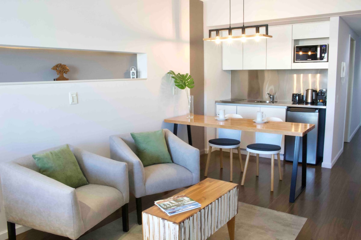 Recoletanın mərkəzində möhtəşəm mənzərəsi olan kitchinette, vanna otağı və balkonu olan yeni studiya mənzili. Sərin müasir dekorasiya, tam təchiz olunmuş və təhlükəsizdir. Kabel və Netflix ilə SmartTV (hesabınızla giriş edin). Böyük imkanlara malik bina: qızdırılan qapalı hovuz, solariumlu açıq hovuz, masaj otağı və sauna ilə spa və idman zalı. Ən yaxşı restoran, bar və kafelərə, eləcə də avtobus və metro stansiyasına piyada məsafə.