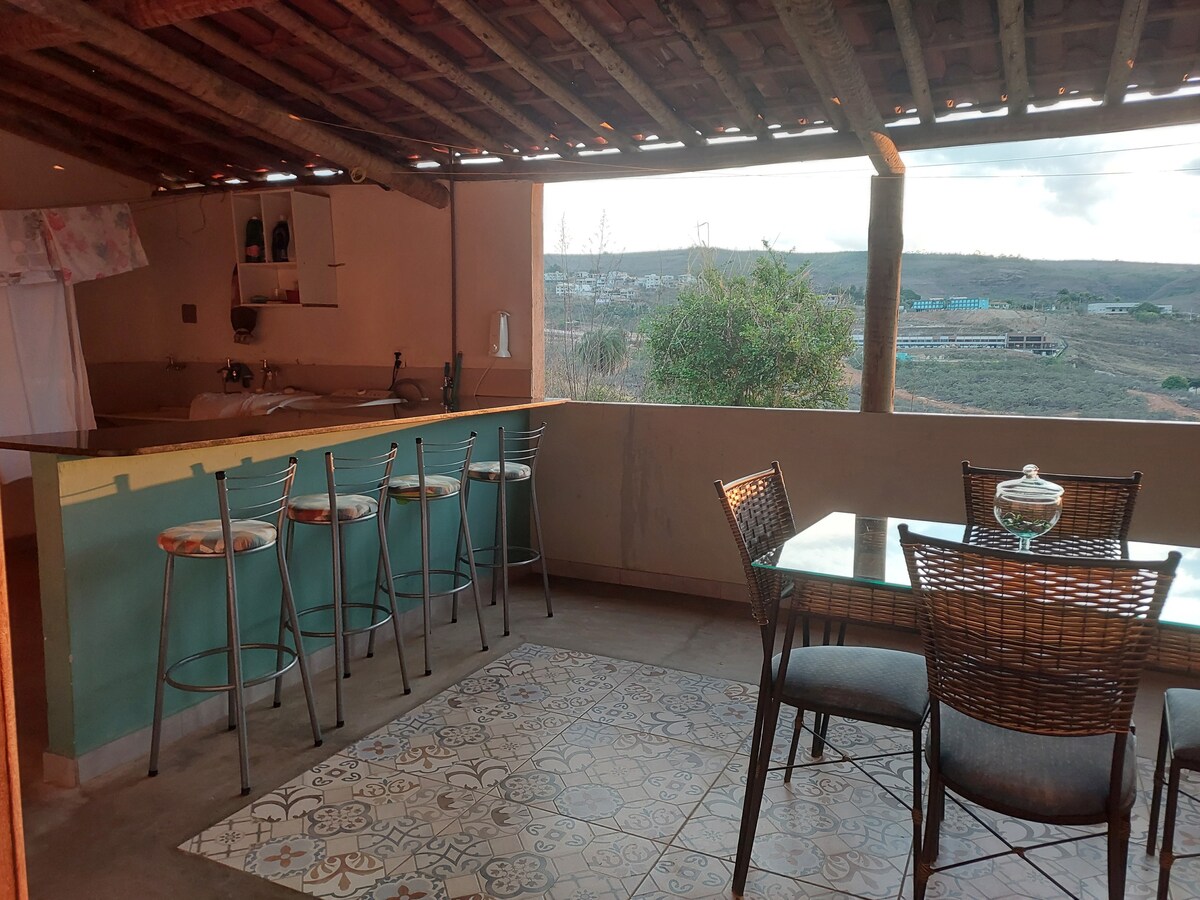 Bu, Conceição do Mato Dentro şəhərinin Tabuleiro rayonundakı kiçik evimdir. Həftə sonları və mövsümlər üçün iki süita təklif edirəm. Onlar evin aşağı hissəsində yerləşir, müstəqil girişi və Serra və Cachoeira do Tabuleiro ön görünüşü olan balkonu var. Birinci nömrədə çarpayı ikinəfərlik və ayrıca hamam otağıdır. İkisi arasında soyuducu, çanaq, mikrodalğalı soba və elektrik sobası ilə təchiz edilmiş kiçik mətbəximiz var. Bazar ertəsi iki birnəfərlik çarpayı və ayrıca hamam otağı var.