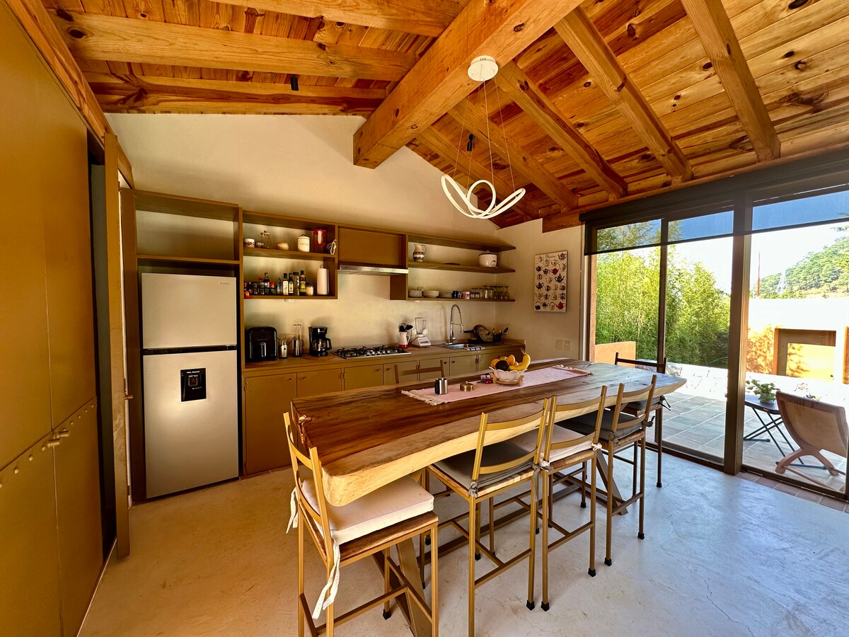 Enjoy a few days at Villa Gozo, a nature-surrounded retreat perfect for enjoying time with family or friends. Located in Acatitlán, at the entrance to Valle de Bravo, Villa Gozo blends the charm of the forest with the comfort of a fully equipped home. Just 15 minutes from Avándaro and 25 minutes from downtown, you’re close enough to explore the main attractions of this Pueblo Mágico while still enjoying peace, privacy, and a true sense of escape.