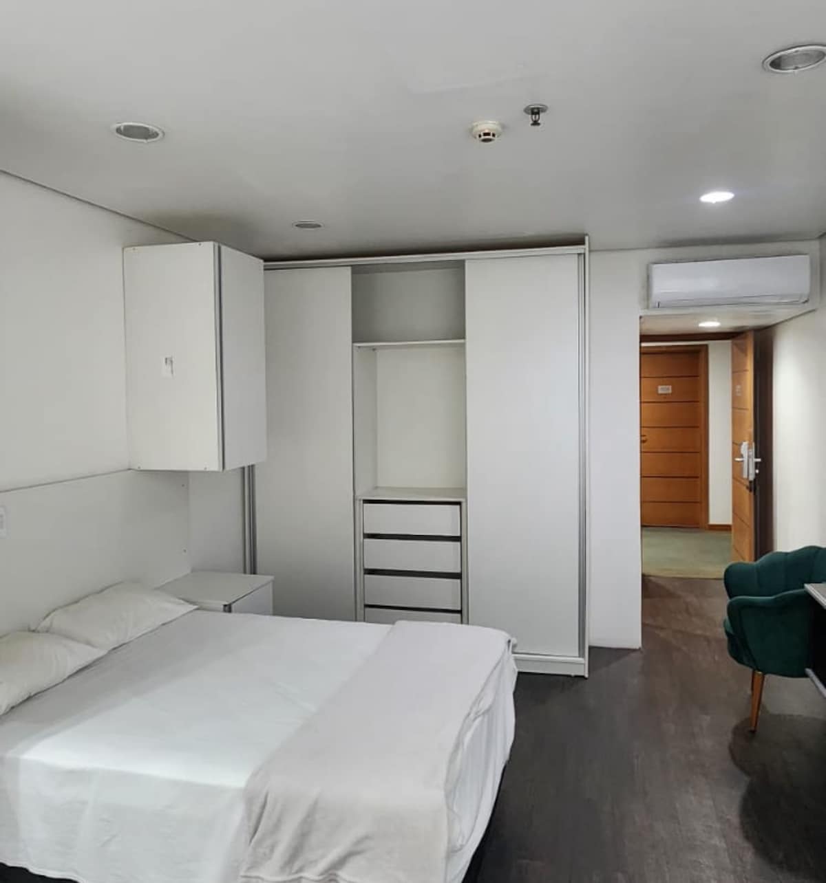 Aproveite a estrutura do hotel Mercure próximo aos principais pontos da cidade. O flat é equipado com ar-condicionado, tv e internet; contendo geladeira, microondas, sanduicheira, cafeteira, chaleira e alexa. Roupas de cama e toalhas estão disponíveis. A limpeza diária é incluída no serviço.
