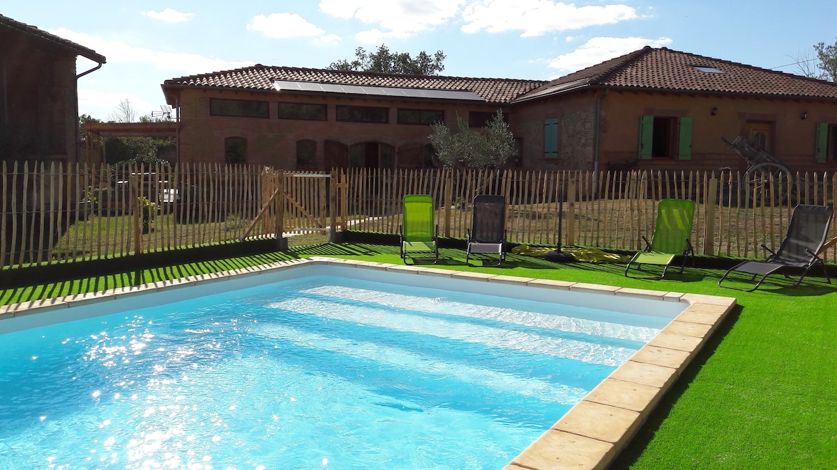 Gəlin və Gersin bu sakit küncündə, Tuluzadan bir saatdan az, Auch-dan isə 45 dəqiqədən az məsafədə batareyalarınızı enerji ilə doldurun. Sakit və sakit bir mühitdə tam təchiz olunmuş 54m ² tamamilə yeni qonaqlama təklif edirik. Qonaqlama yerində 160 x 200 çarpayısı olan yataq otağı, eləcə də çox rahat ikinəfərlik divan çarpayı var. Llamalarımız, eşşəklərimiz, qoyunlarımız , eləcə də atlarımızla tanış ola bilərsiniz. Ev heyvanlarına icazə vermirik.(itlər)