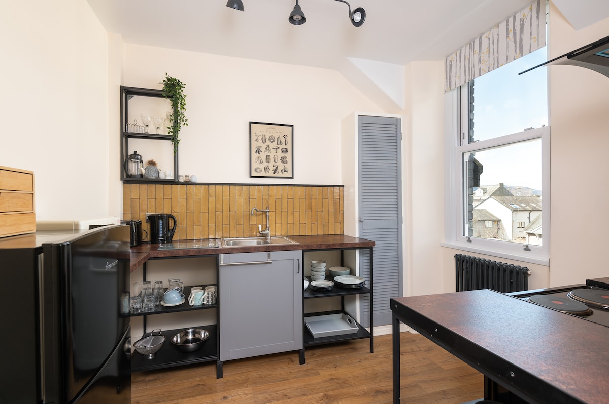 Stylish, recently refurbished to very high standards with modern decor and facilities Parking Centrally located in Bowness. Easy walking distance to Lake Windermere, shops, bars and restaurants Quiet and peaceful The 1st floor apartment has quality new kitchen and bathroom and a keyless entry system. Super comfy king size bed and sofa with high quality soft furnishings Walk on the fells from your door. Take the open top bus to Ambleside, Grasmere and Keswick from the top of the St