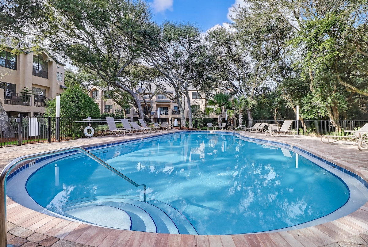 Luxury condo near the Ritz Carlton and Omni hotels. You'll approach your oasis on a tree lined canopy street reminiscent of the romantic south. Large fully stocked chef kitchen. You don't need to bring anything from home. Great for family dinners. Gorgeous master king suite. Stylish and romantic. Comfortable screened in porch. The vacation is steps away from the pool and minutes walk to the beachy sand on a shaded beach path. Beach tent, towels, wagon, and 2 bikes.