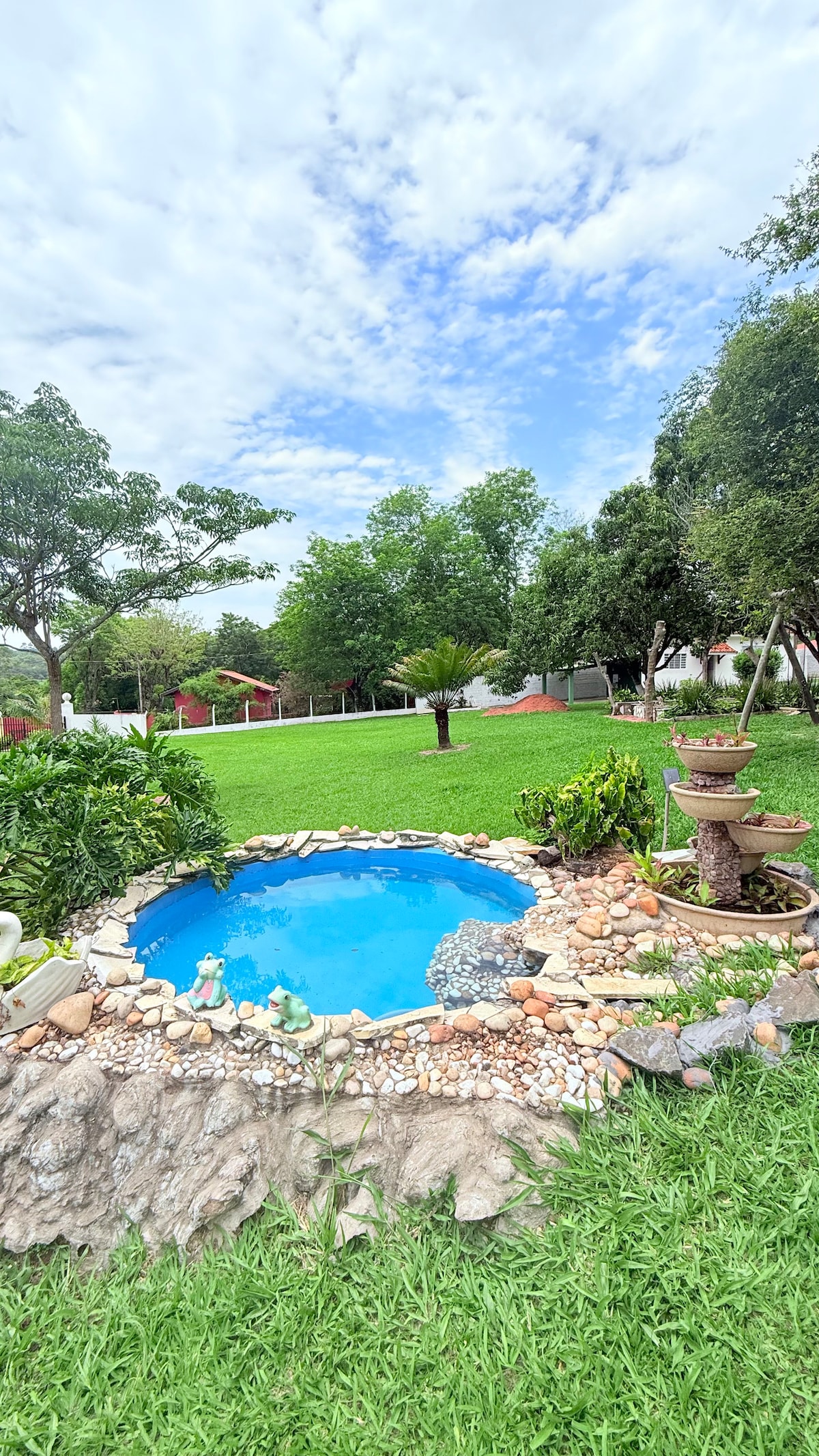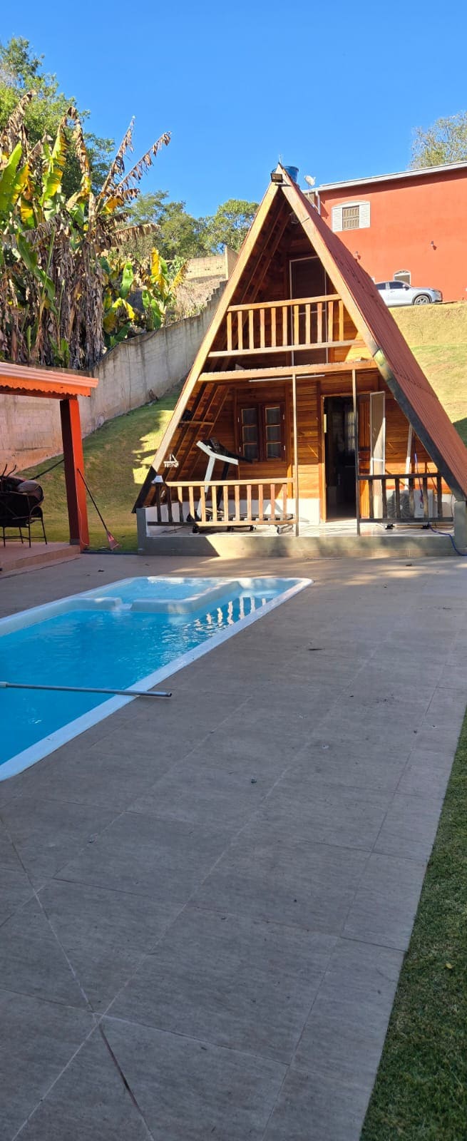 Detalhes do Chalé PRIVATIVO Cap. MÁX: 6 pessoas Cap. p/ pernoite: 5 pessoas Quartos: 2 Banheiros: 2 Sala e cozinha completa Ar condicionado e ventilador Churrasqueira Psicina particular e privativa. Comodidades do Sítio 4 Piscinas Lago de pesca esportiva Playground Trilha na mata Mercado de autoatendimento Campo de futebol e vôlei de areia Segurança 24 horas e cameras de monitoramento