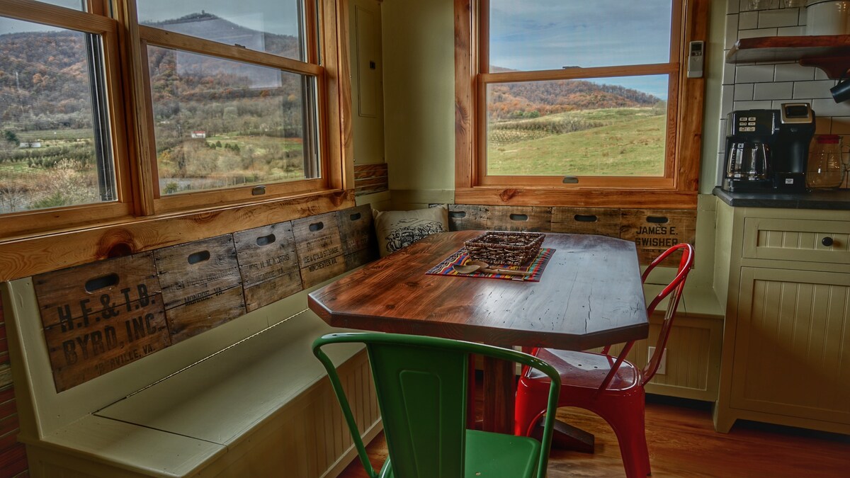 1800-cü illərin əvvəlindəki giriş kabinəmizdə dinc qonaqlamadan zövq alın. Kabinə Virciniya Əsr Ferması olan Morris Orxardın mərkəzində yerləşir. Kabinə eyvanından gölməçəyə baxacaq və Yüksək Pik dağının, alma bağlarının, çəmənliklərin və otlaqlarda otlaqların mənzərəsindən zövq alacaqsınız. Kabin gözlədiyiniz bütün müasir imkanları əlavə edərək gözəl şəkildə təmir edilib və kabinənin cazibədarlığını və tarixini qoruyub saxlayıb.