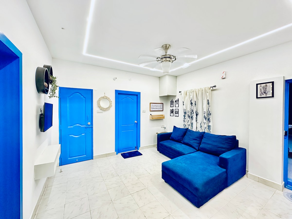 2BHK place that makes you experience a stay that’s warm, calm, and easy from the moment you step in. — the lift didn’t make it, but comfort did! The living room welcomes your luggage, the bedrooms negotiate extra sleep, and the kitchen encourages “just one more snack.” Food, movies, shopping, and fun—everything’s just around the corner. Whether you're in Chennai for work, family visits, or a weekend break, this home has everything you need-space, privacy, and seamless self check-in.