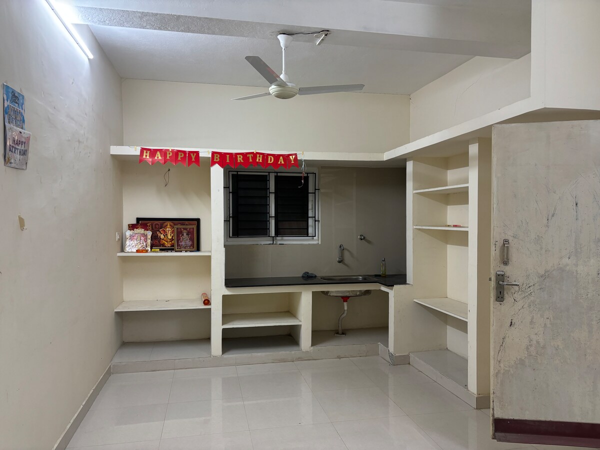 Elan başlığımız olaraq bu, Rahat, Rahat, Xoşbəxt, Rahatlıq, Məxfilik və daha çoxunu hiss etdiyiniz Evə Qayıdış kimi hiss etməyinizə səbəb olacaq. Yüksək Yaşayış məhəlləsi səs-küydən uzaqdır, lakin hamıya yaxındır. Biz Shri shiridi sai shanthi nilayam-a yaxınıq. Televizorlar naqar. Korattur. Anna naqar qərbindən 5-10 dəq. Ev əlavə 3 vanna ilə tam təchiz olunub. Bütün otaqlarda və qonaq otağında AC. Wİ-Fİ. Lift ilə ikinci mərtəbədə. Bir örtülü qapalı parkinq.