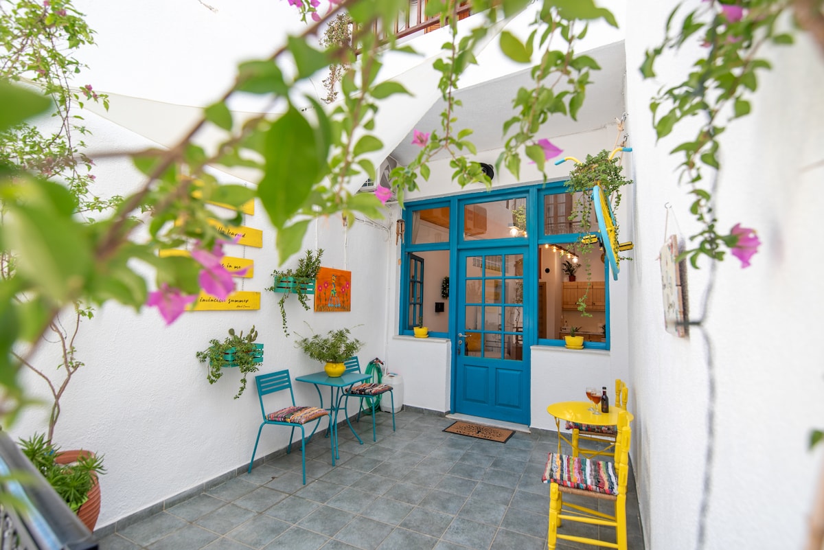 Naxos Taun şəhərinin mərkəzində mənzərəli qonşuluqda yerləşən və 5 nəfərə qədər qonağa ev sahibliyi edə biləcək gözəl şəxsi verandası və çoxlu sənət toxunuşları olan unikal estetik mənzil. Limandan piyada 10', Bazardan və digər maraqlı yerlərdən (qəsr, muzeylər və s.) və əyləncələrdən (barlar, restoranlar və s.) 1' -2' məsafədə yerləşir. Avtomobilsiz səyahət edirsinizsə, narahat olmayın; ən məşhur çimərlik və kəndlərə ən yaxın avtovağzal piyada 3-dür. Piyada 3-də pulsuz parkinq yeri!