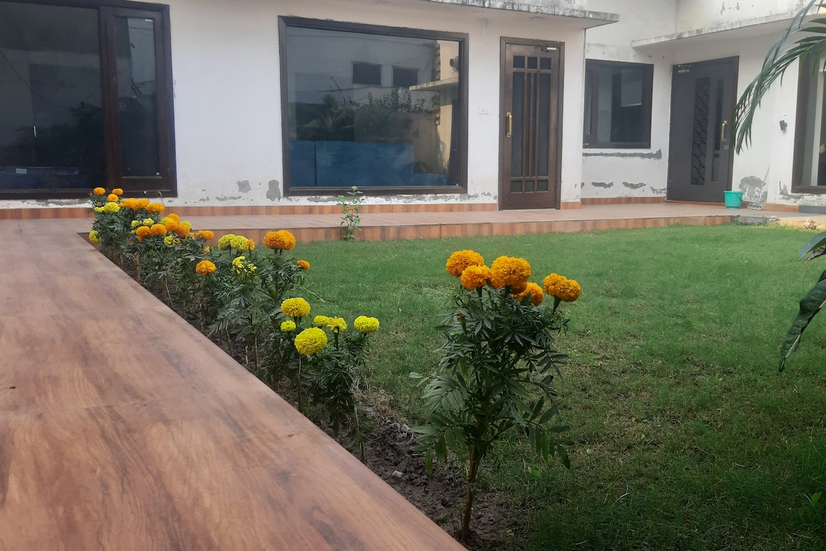 Romantic Luxury Stay near Amritsar Airport & Railway Station ✨ Private floor 10x bigger than a hotel room! Includes Bedroom, Living Room, Kitchen, Bathroom & Garden 🌿 ❤️ Perfect for couples – full privacy & resort-like comfort with top amenities. 🔥 Bon Fire @ just Rs.600 🏊♂️ Inflatable Pool @ Rs.600 🛕 Golden Temple just 15 mins away 🍽️ Restaurant Nearby 🛵 Scooty on rent ₹500/day 🚗 Ola/Uber available 🍔 Zomato/Swiggy available