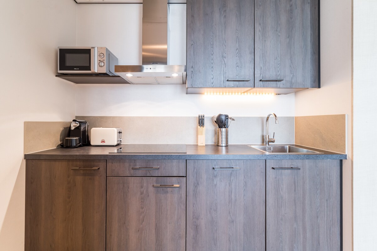 Kiçik ailələr və ya dost qrupları üçün əla olan, istirahət, yemək və yataq sahəsi olan geniş studiya. 150-179 sm çarpayı və divan-çarpayı dörd nəfərə qədər qonağı yerləşdirə bilər. Soyuducu, soba, mikrodalğalı soba/fırın, qabyuyan maşın və Nespresso maşını ilə tam təchiz olunmuş mətbəx. Divan, düz ekranlı televizor, pulsuz Wi-Fi və iş sahəsi olan yaşayış sahəsi. Yağış duşu, saç qurudan və tualet ləvazimatları olan ayrıca hamam otağı. Studiya mənzildə iqlim nəzarət sistemi var.