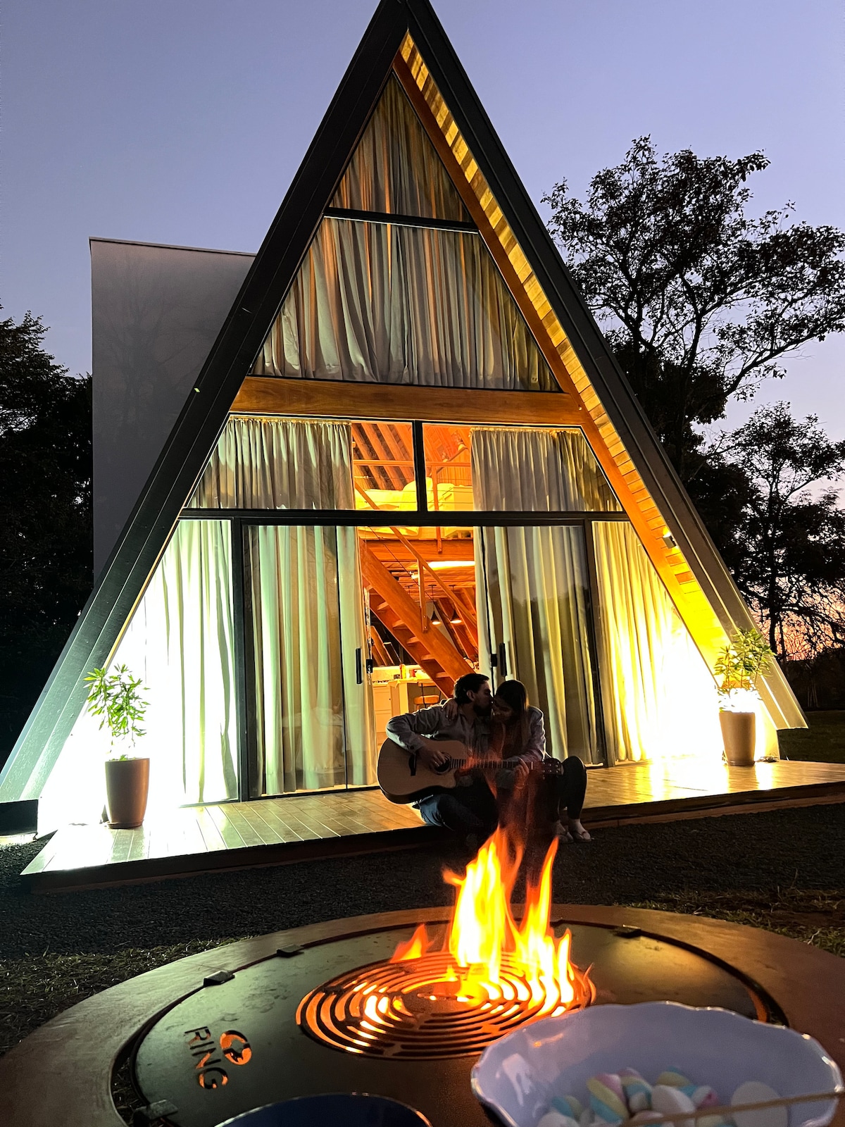 Chalé sülh və sakitlik axtaran cütlük üçün idealdır. Qəhvə maşını, su soyuducusu, lampa, baqaj yeri, ikinəfərlik çarpayı/divan, minibar, 110v çıxış, taburetlər, barbekü, qamak, çarpayı və hamam dəstləri ilə. Mətbəx komunaldır. Düşərgə sahəsi ilə paylaşılan 4 hamam otağımız var, 2-si isti duş və xarici duş. Qarşılıqlı əlaqə qura biləcəyiniz mini atlar və mini keçilərimiz var. Bəzi şəlalələrə yaxınıq.