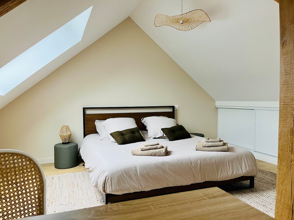 Welcome to this large 50 m2 studio in the heart of Ancenis, 80 metres from the banks of the Loire. Bright, quiet and well-equipped, it offers a calm, cocooning atmosphere. The contemporary, elegant decor will help you relax after a busy day. This pretty gîte is on the ground floor of an old building set in a charming garden planted with trees and surrounded by stone walls, and is ideally located right next to the shops and the Château. Bikes and families welcome