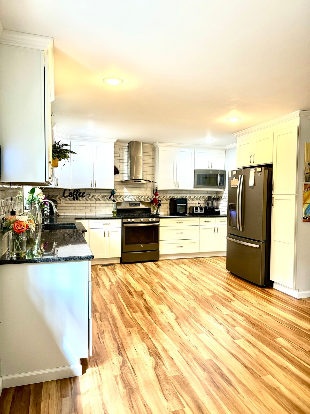 The Bull's Retreat is an awesome space with 2 King Beds and 2 single beds, ideal for travelers or a getaway. It's centrally located in a peaceful neighborhood near Ft. Bragg, Fayetteville & Sanford NC. It's great for reconnecting with family and friends. The open-concept living space includes a fully equipped kitchen, breakfast bar, dining area, and 3 bedrooms, 2 bathrooms. You can relax around the fire pit Note: Owners reserve the garage for personal use only; it isn't accessible to guests.