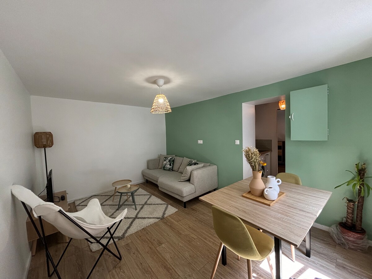 Xoş və yaşıl bir yerdə, Parisdən 44 km aralıda yerləşən Sena və Marne adlı kiçik bir kənddə sahibin yaşayış yerinə bitişik mənzil. Vacib nəqliyyat vasitəsi. İki otaqlı mənzil mükəmməl təşkil olunub. Tam təchiz olunmuş mətbəx: mikrodalğalı soba, qabyuyan maşın, hob və ekstraktor başlığı. Bir sərəncam maşını Nespresso, radiator barmaqlığı və bouilloire. Televizor və Wi-Fi mövcuddur. Elektrik diyircəkli şitlər və üçqat şüşəli pəncərələr.
