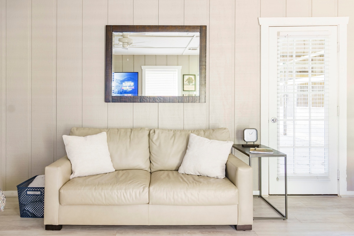 2023-cü ildə 30 hektarlıq şam ağacları arasında yerləşən bütün imkanlara malik evcik. İctimai qayıq rampasından 3/4 mil məsafədə yerləşir. Üstəlik, ayrıca çimərliyi olan Sem Rayburn gölünün xüsusi sahil xəttinə piyada məsafə var. Bir 150-179 sm ölçülü çarpayı və tam ölçülü çarpayıya çevrilən divan çarpayısı var; 3 nəfər asanlıqla yata bilər. Qonaqlamanızı bron edin və Gölkənarı Evcik İstirahət Mərkəzimizin füsunkarlığını yaşayın. Sem Rayburn gölündə tətil zamanı kiçikliyin niyə həqiqətən gözəl olduğunu kəşf edin!