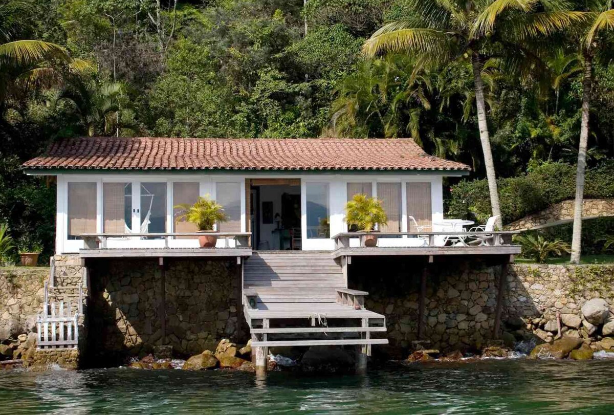 Relaxe com a família nesta acomodação tranquila e aconchegante Suíte pé na areia de frente pro mar e cercada a natureza, onde você poderá explorar as redondezas da ilha fazendo uma remadas de caiaque, stand up paddle e canoa Área externa com churrasqueira e utensílios para cozinha Suíte com cama de casal+ cama de solteiro, cabendo mais colchões no quarto. Comportando até 7 pessoas Frigobar Tv Wi-Fi Ar condicionado Roupas de cama