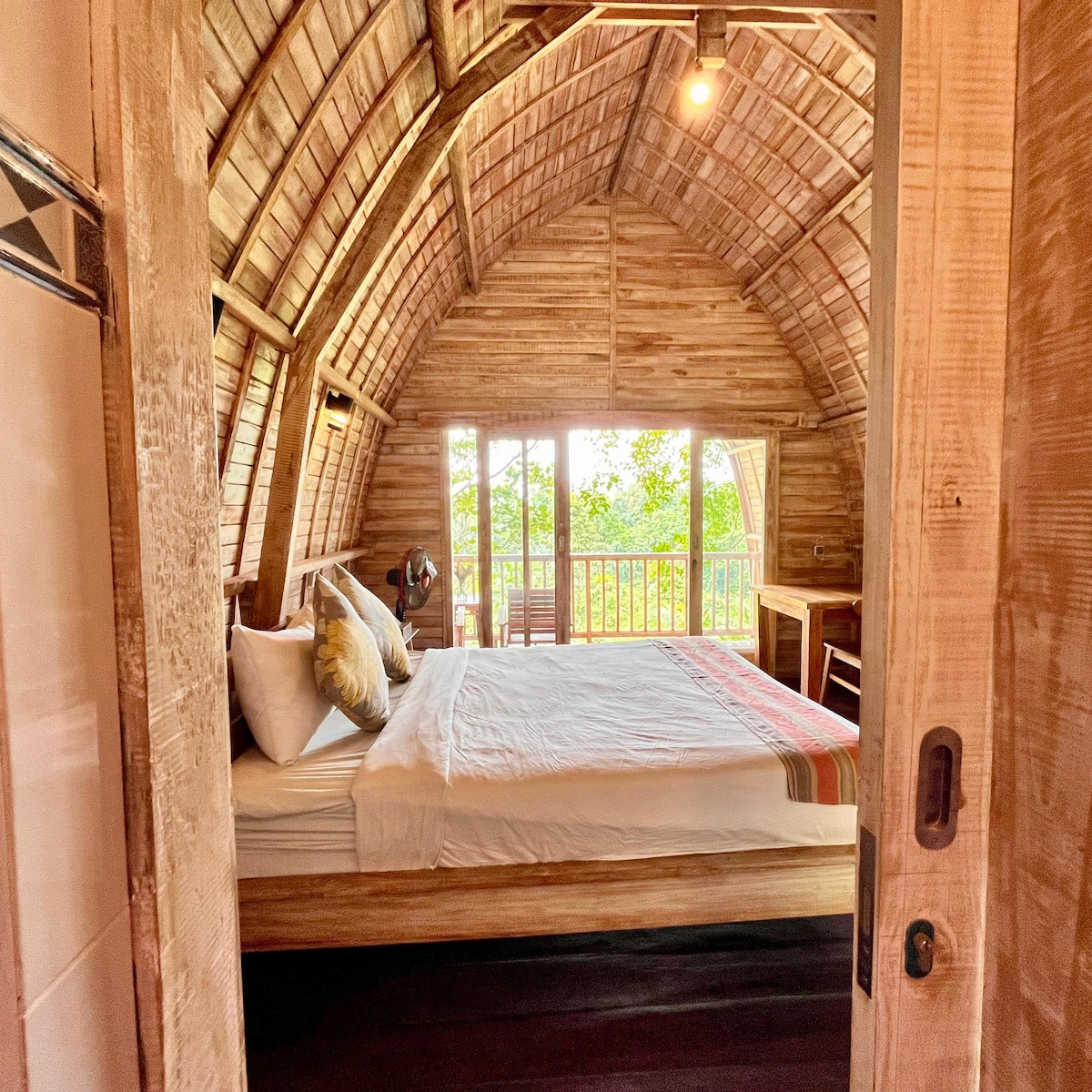 Verdant kəndinin arasında yerləşən Bali ağac evimizdə lüks yaşayış təcrübəsini yaşayın. Evciyə bənzəyən bu lüks kabinə təbiətlə asanlıqla qarışan qüsursuz dizayna malikdir. Birbaşa çarpayınızdan əzəmətli dağların heyrətamiz mənzərəsini seyr edin. Cəngəlliyin sakit pıçıltıları ilə əhatə olunmuş unikal açıq hava vannasında dincəlin. Panoramik fonda qurulmuş xüsusi göyərtədə ləzzətli barbekü bayram edin. Balinin mahiyyətinə – dəbdəbənin vəhşi təbiətə qovuşduğu yerə baş vurun.