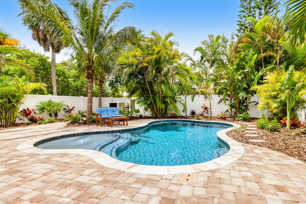 Steps to Main Street and minutes to beaches, yet tucked away on a quaint street. Private yard with grill in a 100 % prime location. Walk to restaurants, breweries, shops, and live music. Stroll to gorgeous sunsets or drive minutes to award-winning beaches such as Honeymoon Island, Caladesi Island & Clearwater Beach. Designer decor. Sleeps 6. Two king bed suites and a luxury couch that sleeps 2 more. Fully loaded for kids, pets and beach days. Treat yourself and book this Dunedin favorite today.