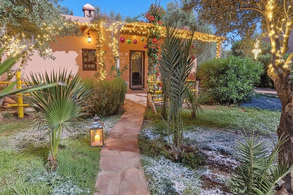 Cemma el Fna meydanından 25/30 dəqiqəlik məsafədə yerləşən bu rahat məkanın bukolik cazibədarlığını kəşf edin. Çoxsaylı quşların çırpınması... Atlasın heyrətamiz mənzərələri.... Zeytun sahələri, ətrafda meyvə ağacları və Ourika Vadisinin tipik kiçik kəndlərinin (qoşa) füsunkarlığı. Şəhərin səs-küyündən uzaqda gəzinti və ya velosiped sürmək sevənlər üçün cığırlar.... Mövsümdə salatlar, pomidor, göyərti, aromatik otlar seçmək üçün böyük tərəvəz bağından yararlanın...