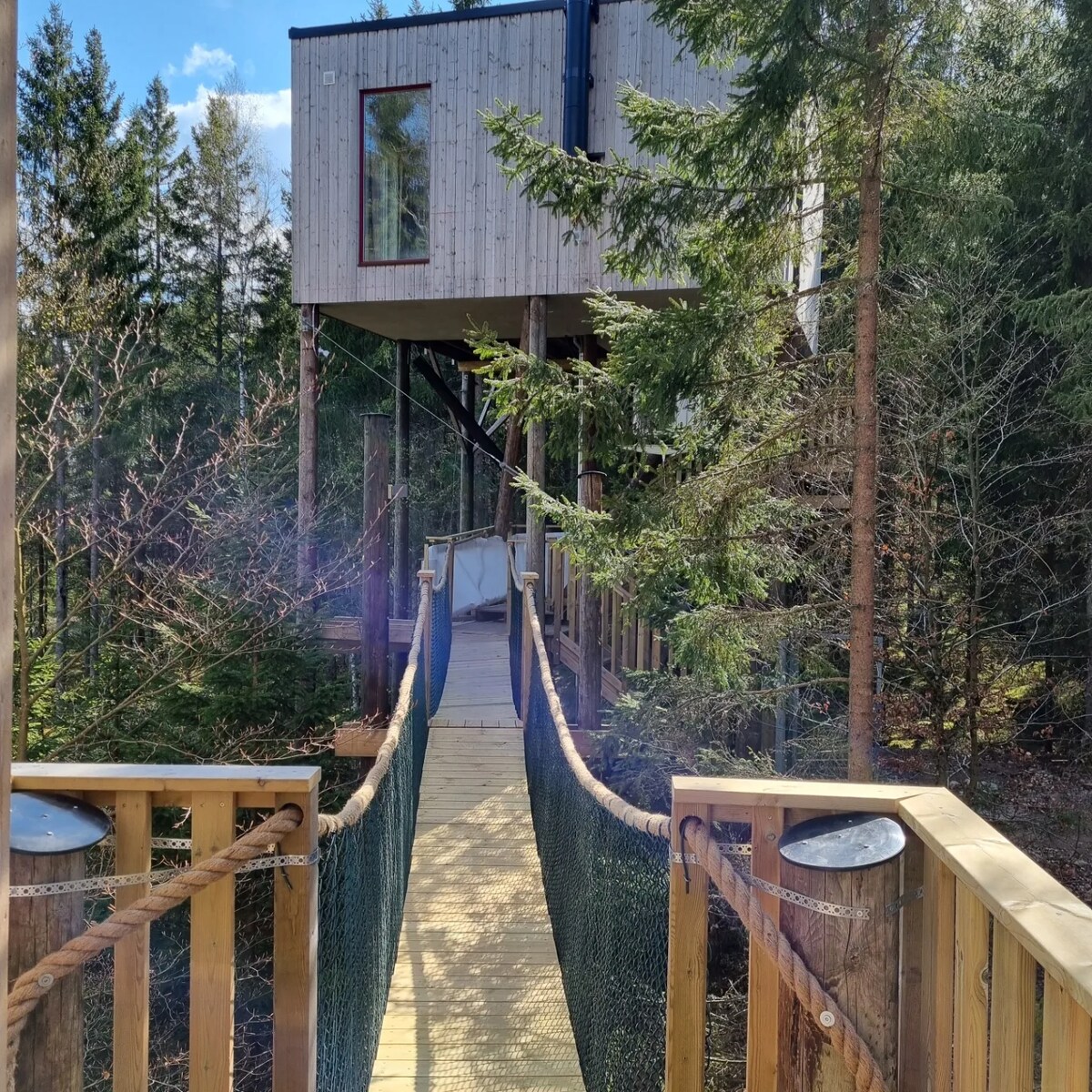 Ett unikt och rofyllt boende mitt i skogen. I detta trädhus bor ni uppe bland träden på en lugn och stilla plats med djur, fåglar och naturen som grannar. Här är ljudnivån tyst, det doftar skog och luften är ren. Söker du en plats att varva ner på har du hittat helt rätt. Huset är byggt av virke från samma skog som huset står i och isoleringen är hyvelspån från golv och väggar. För oss är det ekologiska och lokala viktigt att värna om.