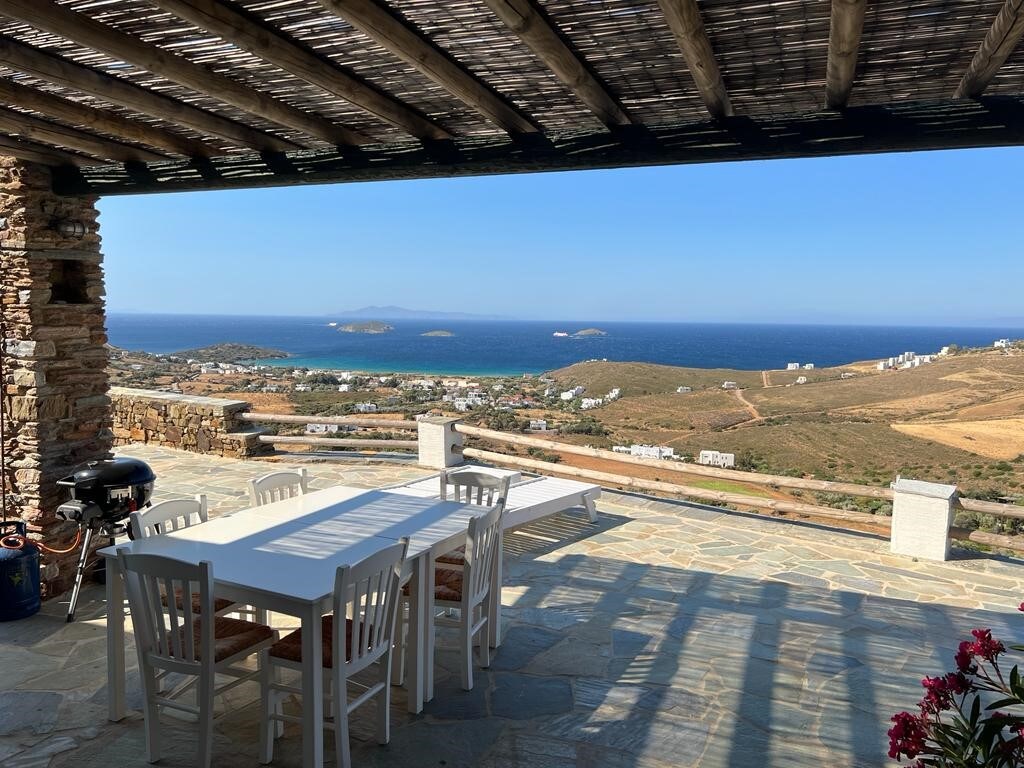 A beautiful four bedroom house ideal for a relaxing and peaceful stay in the island of Andros. The house is surrounded by fields and it has a panoramic view over the infinite blue of Aegean Sea. The hosts will be glad to help you with ideas about sights you can explore while you visit the island. The house is located 2,4 km from the port of Gavrio and 2,1 km from Agios Petros beach.