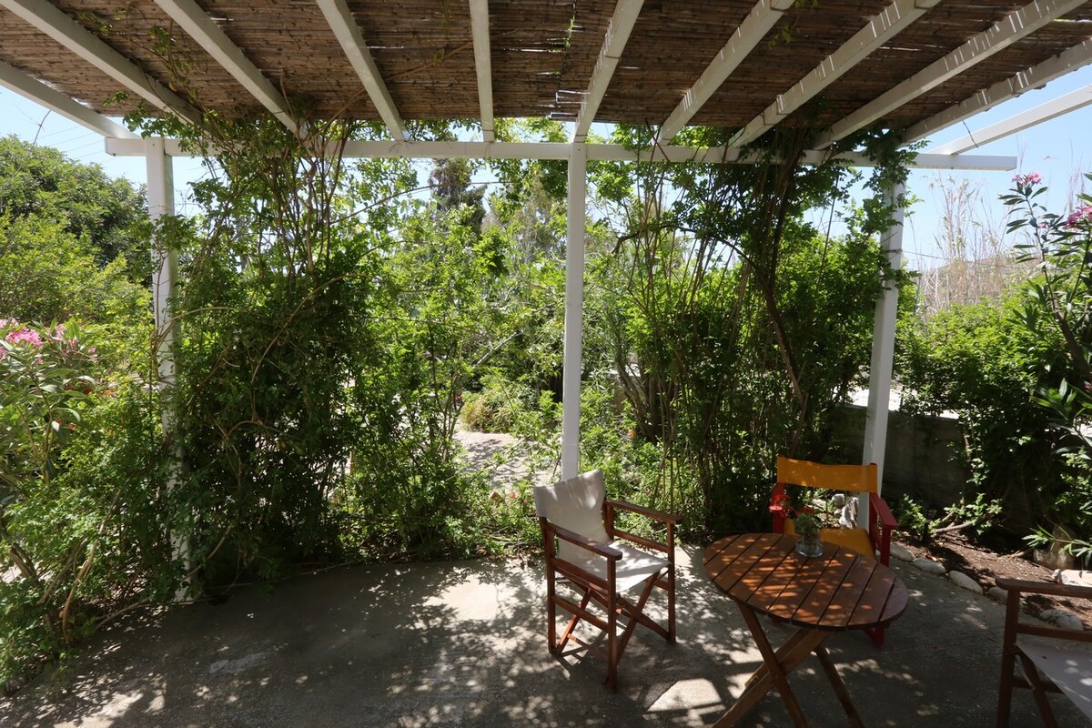 Lavender cottage, one of the three independent residences of Chroussiano Farmhouse, sets in an organic orchard, amid blossoming geraniums and olive trees, with unobstructed views to the endless Aegean blue and the nearby pine wood of Chroussa village. Built out of love and respect for the environment, it follows the Cycladic architectural tradition and radiates a homely warmth helping our guests feel in harmony with the Cycladic countryside landscape.
