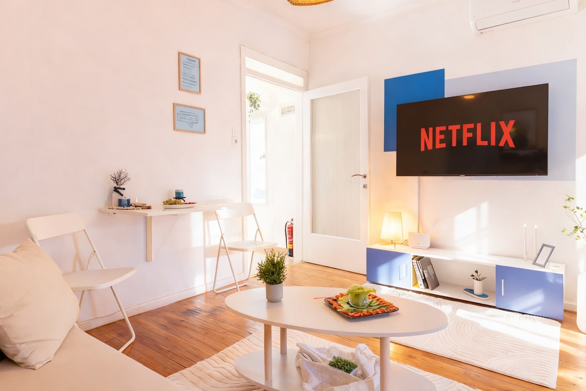 Enjoy a bright and relaxing stay in this stylish and centrally located apartment in Thessaloniki. Designed with calming blue and white tones, the space offers a cozy atmosphere filled with natural light. Located in a lively central neighborhood, the apartment is within walking distance of cafes, restaurants, shops, and public transportation, making it a perfect base for exploring the city.