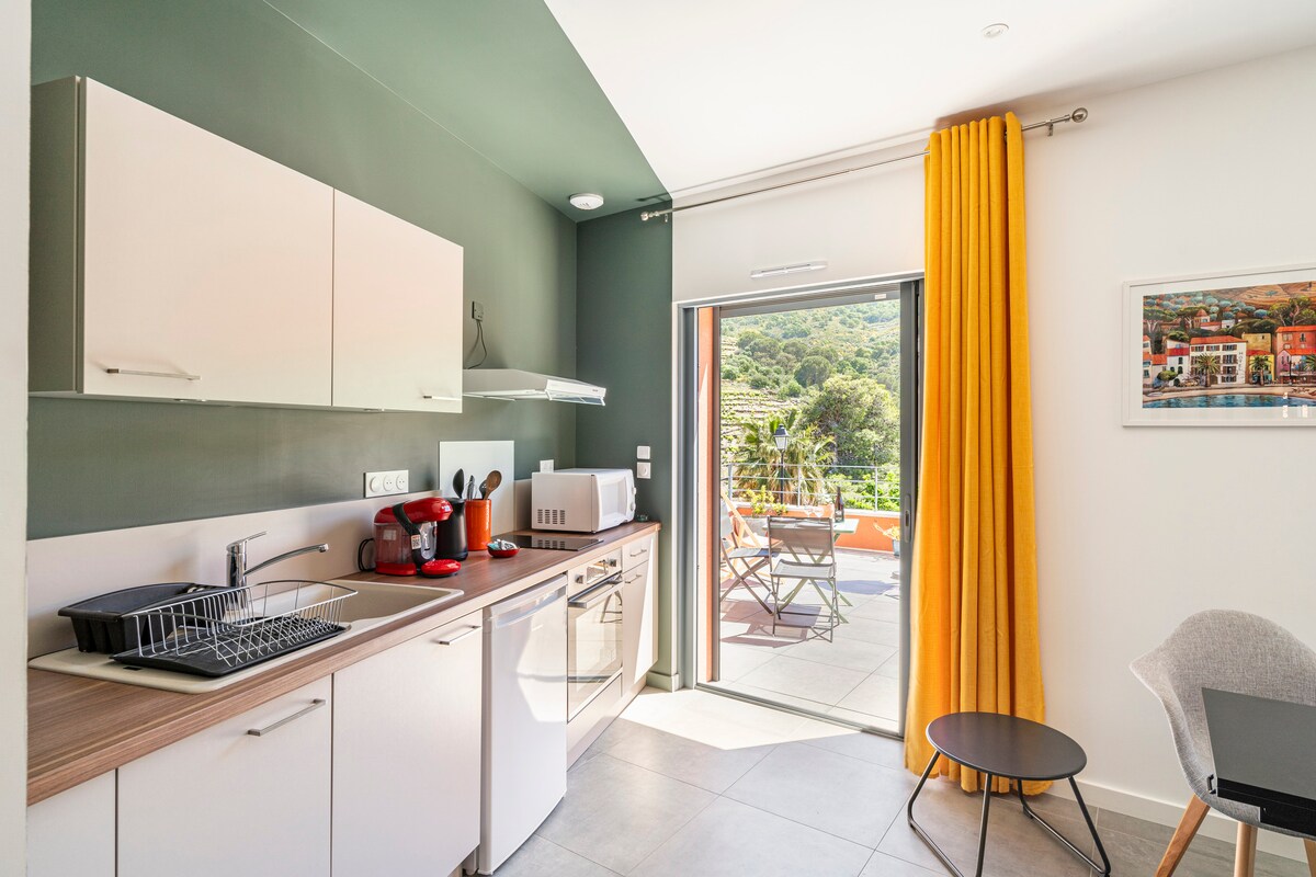 Mənzil təhlükəsiz parkinq, üzgüçülük hovuzu (apreldən sentyabrın əvvəlinə qədər açıqdır) və solarium da daxil olmaqla dənizkənarı yaşayış yerində * * * yerləşir Kollioure körfəzi üzərindəki terrasdan açılan panoramik mənzərə, qəsr, çimərliklər və kilsə daimi mənzərədir. Mərkəzdə dəniz kənarı ilə 5-10 dəqiqəlik məsafədə yerləşir.