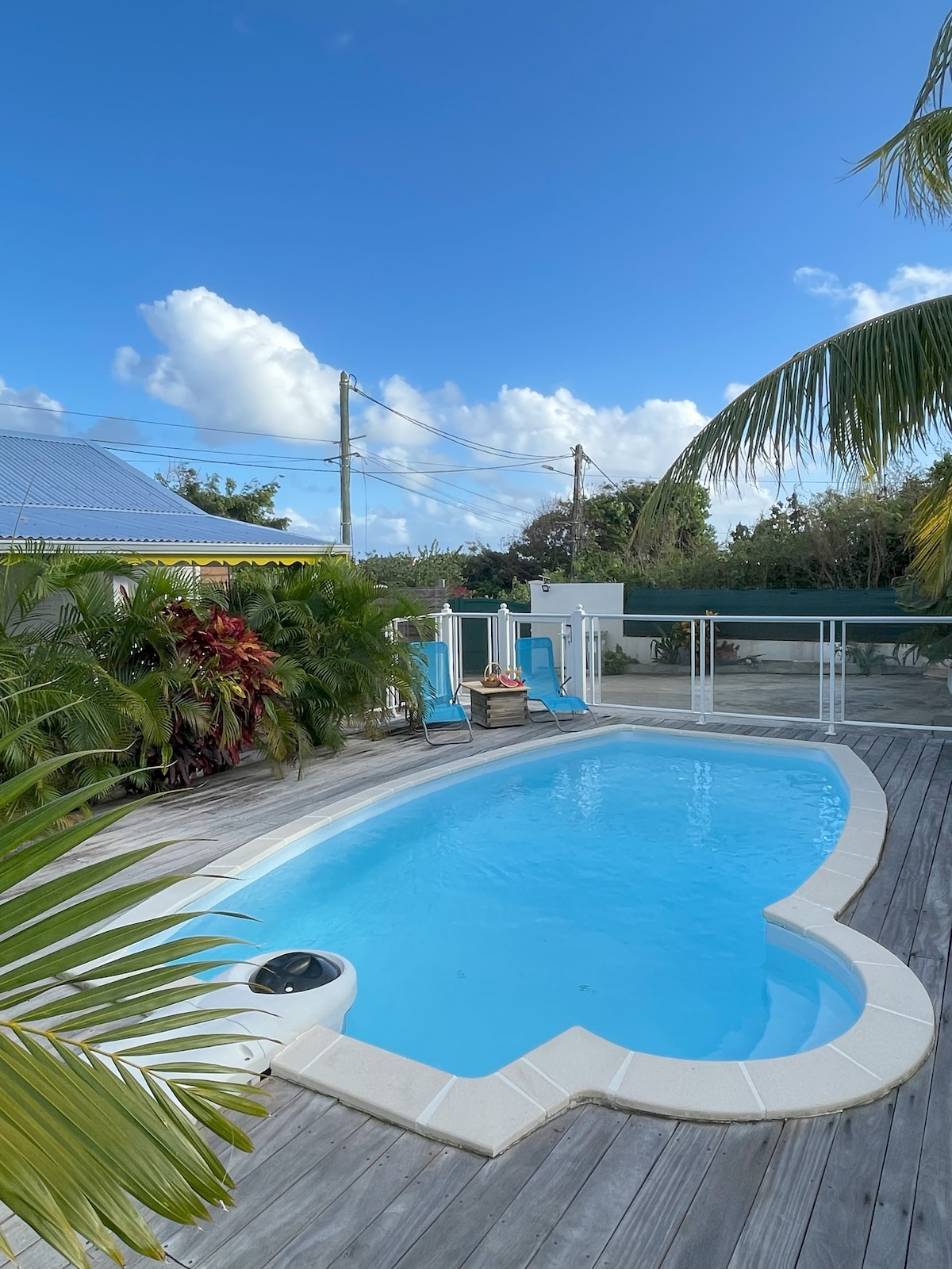 Kaznature entre deux mers, se situe proche des plus belles plages de la grande terre, pointe des châteaux Saint-François Guadeloupe 🏝️. Gîte tout équipé, clim, brasseurs d air, wifi et cuve d eau anti coupures. Piscine (bac à punch). Idéal pour 2 personnes max..😃