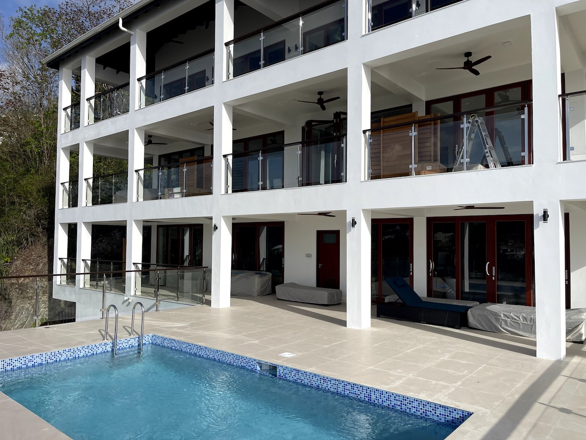 A warm welcome to our beautiful Villa Vino Lucia and Helen’s Wine Cellar. This hidden gem is nestled in the hillside of Fisherman’s Cove, overlooking the majestic blue sea and lush green mountains of Marigot Bay, St Lucia. This brand-new vacation property opened its doors in June 2024 and consists of 4 full size one bedroom apartments (1400 sqf), a studio, pool deck, and an amazing wine cellar (opening end of July). Includes full kitchen, A/C, TV's, Internet, Safety box. You will love this place