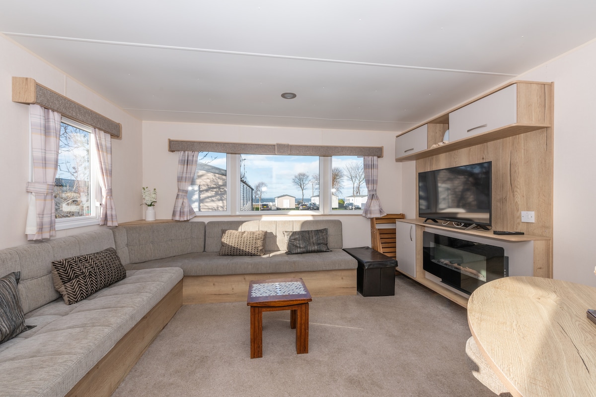 Beautiful fully-equipped 6 berth mobile home in a stunning location close to the East Sands in historic St. Andrews. Free WiFi.Master bedroom with en-suite and fitted wardrobes. Comfortable twin room single beds can be converted to a king size bed. Lovely far-reaching views of the beach, sea and St. Andrews from the lounge windows. Extra fold out double bed in the lounge. Relaxing seating, TV, dining area, kitchen and spacious decking with wonderful views. Short stroll to the beach and town