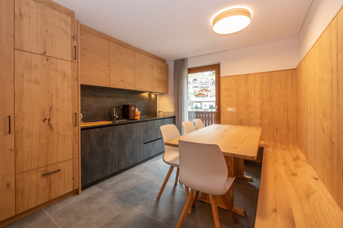 Döşəmədən tavana qədər pəncərələri, müasir mətbəxi, açıq hamam otağı və Dolomitlərə mənzərəsi olan balkonu olan studiya. Kral ölçülü çarpayı /cənubda üzən günəşli balkon / döşəmədən tavana qədər pəncərələr / divan çarpayı / HD LED TV / tam təchiz olunmuş markalı mətbəx / vanna otağı, yağış barmaqlığı/ döşəmə istilik / yüksək sürətli WIFI/ 40 m² / 1-2 nəfərlik studiya. SPA: buxar hamamı, fin saunası, bio sauna, soyuq su hovuzu, istirahət zonası, XXL sonsuzluq jakuzisi, üzgüçülük hovuzu. Çarpaz Qutu – İdman zalı.