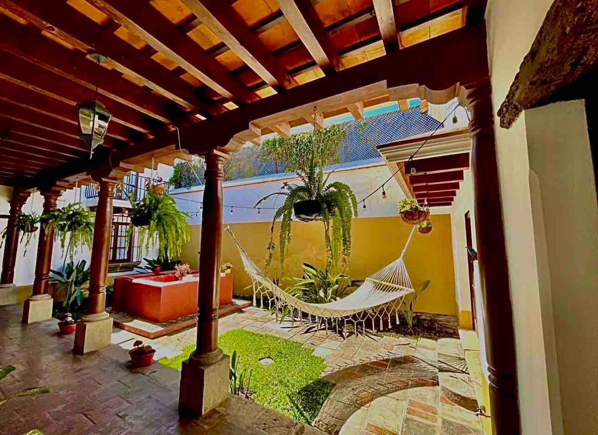 Charming and cozy home away from home Spanish colonial house, designed for your comfort and relaxation. It includes all the facilities you might need while on holidays Located in the heart of Antigua, with perfect views to the surrounding Agua, active Fuego and Acatenango volcanoes. A place from where you can journey through the land of the Maya or just chill at Parque Central which is within walking distance Your time at our home will be deligthful and will leave you wanting to come back