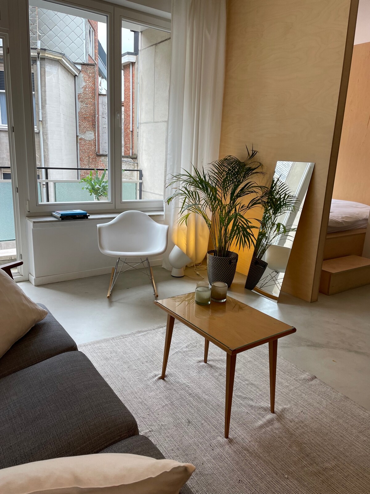 Helder en charmant design appartement, afgewerkt met kwaliteitsmaterialen. Er is 1 badkamer, 1 slaapkamer, keuken, Nespresso machine en veel bergruimte. Het appartement heeft een zeer goede locatie, dichtbij opera, theater, stadspark en op loopafstand van musea, mooie winkels en het toeristische stadscentrum. Belangrijke openbaar vervoer, vélo, supermarkt 7/7, lunch en koffie plaatsen net om de hoek. Living, keuken, slaapkamer, badkamer met douche en wc