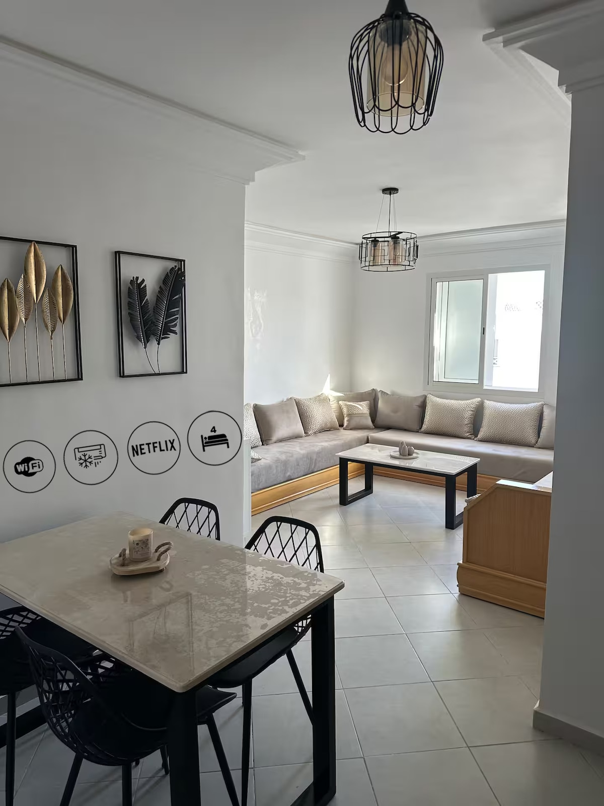 - Atlantik Okean Mənzərəli geniş, işıqlı mənzil. - Təhlükəsiz yaşayış yeri, 24/7 təhlükəsizlik, pulsuz parkinq, lift. - Anza-Biçdən 500 m məsafədə, Aqadir Marinaya 5 dəq, Taqazouta 10 dəq. - Anza-Biçdə gəzintiyə çıxın və ya kafeləri, restoranları ilə tanınan canlı Corniche bölgəsi boyunca dincəlin, Karrefur cəmi 200 m məsafədədir - Tam təchiz olunmuş, rahat döşək, 55'' Ağıllı TV, Wi-Fi, saç feni, ütü, dəsmal, paltaryuyan maşın, mikrodalğalı soba, qəhvə maşını, böyük soyuducu, iş sahəsi, yemək masası və s...