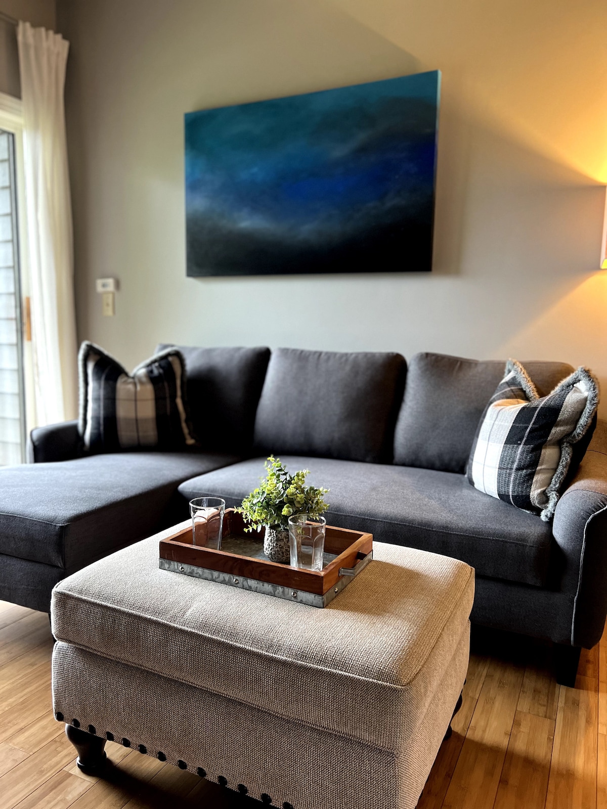 Rooms are being updated so may look different than photos. It features A contemporary design with touches of rustic design. Lighting throughout for a romantic feel over looking a daily changing tree-scape with 1 King Bed, 1 Queen sleeper sofa, A mini fridge, Microwave, Coffee Maker, smart tv), Desk, Full Bathroom, Added space out side of Bathroom full sink storage Drawers, spacious porch over looking ever changing foliage.