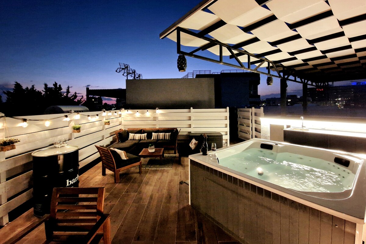 Designer 2Bed, Rooftop Hot tub, BBQ, workspace