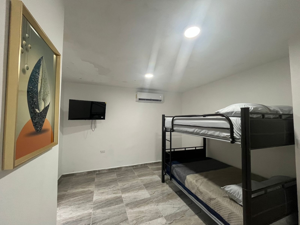 İki mərtəbəli loft, CHEDRAHUI VƏ Los-Anceles FENAHUAP-dan 3 dəqiqə. 8-10 nəfər üçün. Gecəlik 1800 peso. iki nəfərlik çarpayı bir çarpayı ölçüsündə çarpayı. bir divan çarpayı. döşək seçimi Inflable. isti su, televizor, kondisioner İnternet, qəhvə və su. Dəsmallar. Tualet kağızı. Sabun və şampun daxildir. Otağın qarşısında parkinq. videomüşahidə kameraları. 3 gündən çox qonaqlamalarda dptonun ümumi təmizliyini daxil edirik. qonaqlama üçün qaimələr yaradırıq.