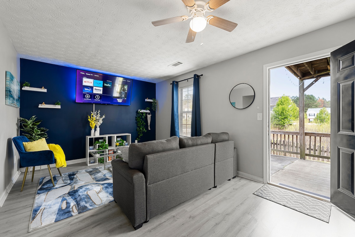 Discover your perfect getaway at our private guest house in tranquil Conyers, just 20 minutes from Atlanta! Poundcake awaits you! Ideal for couples, this charming studio features a full kitchen, dedicated workspace, fast WIFI, and a luxurious spa-like bathroom with Jacuzzi tub. Enjoy the ease of self check-in, your own private entrance, and a secluded backyard patio complete w/outdoor dining area. Your peaceful escape is just a message away—book now and unwind in style! Just message us!