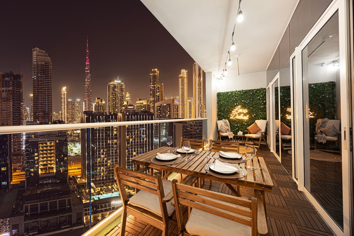 Ayrıca balkonunuzdan Burc Xəlifənin LED tərəfinin tam, maneəsiz görünüşündən zövq alın — evdən çıxmadan hər gecə ikonik işıq şoularını tutmaq üçün ən yaxşı tərəf. ✨ Ağıllı Ev: Aleksa ilə işləyən avtomatlaşdırma sayəsində bütün işıqları və Kondisionerləri səsinizlə idarə edin 🌇 Burc Görünüşü: LED üzbəüz tərəf gecəlik işıq şouları təklif edir — balkonunuz ön tərəfdədir Hər yerdə 🎬 əyləncə: İki Netflix ilə işləyən proyektor və bir ağıllı televizor — bu, hər otaqda kinoteatrdır